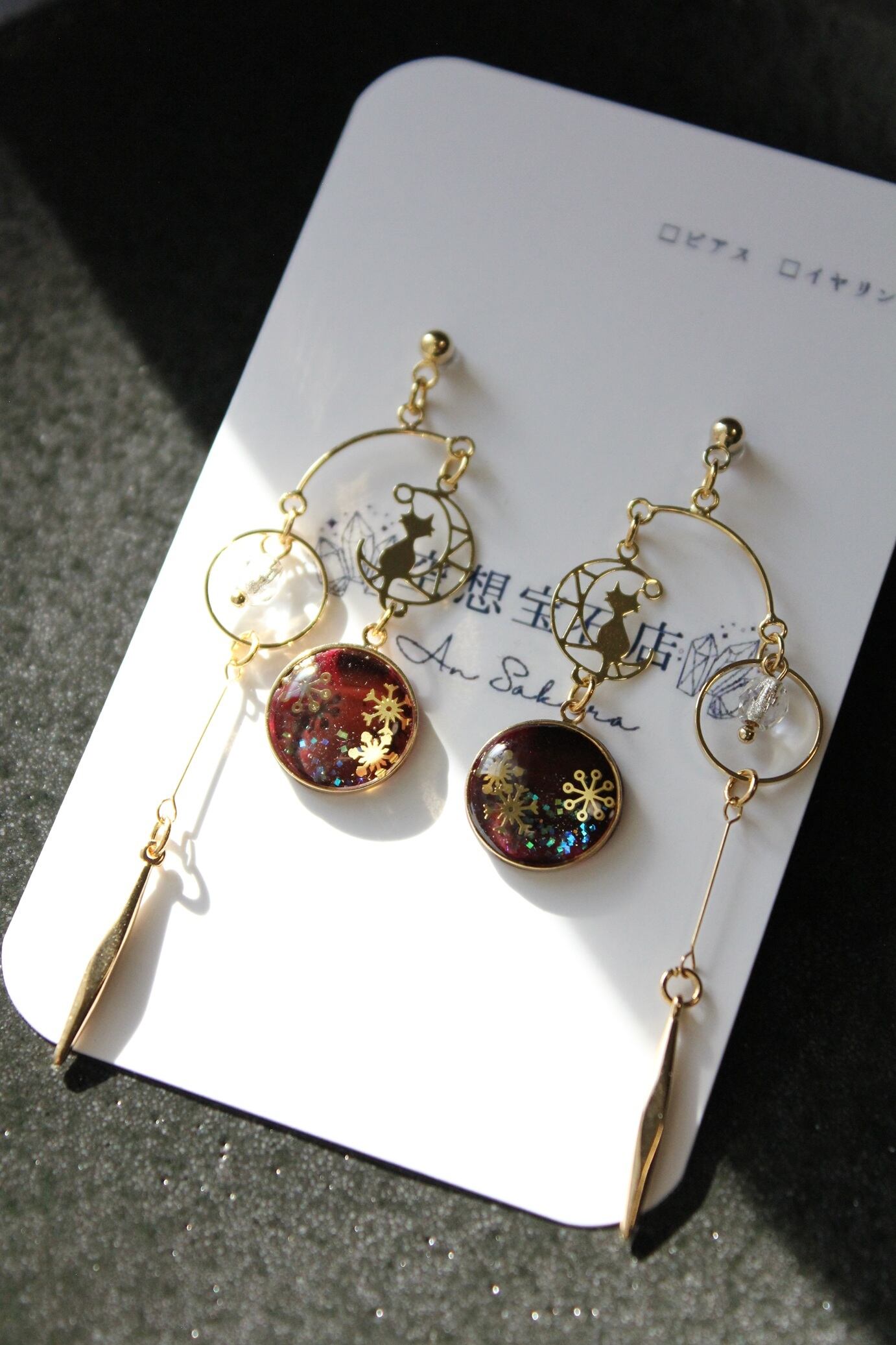 雪と月猫のアクセサリー(深紅)